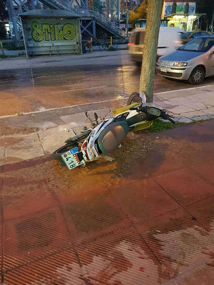 Φούσκωσαν οι πλάκες του πεζοδρομίου και έριξαν και ένα μηχανάκι , όπως θα δείτε στις φωτογραφίες.
