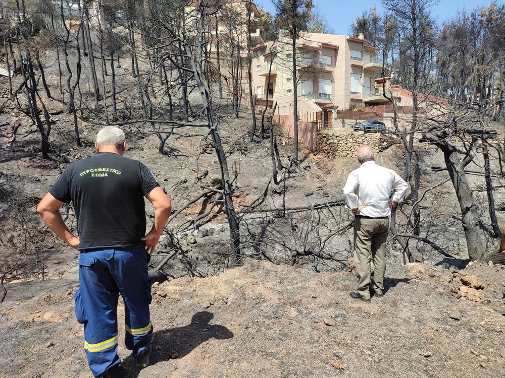 Στα σημεία του Δήμου Διονύσου που χτυπήθηκαν από την πρόσφατη μεγάλη πυρκαγιά σε Σταμάτα, Ροδόπολη και Διόνυσο βρέθηκε την Τετάρτη 29/7 ο Δήμαρχος Διονύσου Γιάννης Καλαφατέλης συνοδευόμενος από τον Αντιδήμαρχο Αναπτυξιακού Προγραμματισμού, Τεχνικών Υπηρεσιών και Ενεργειακής Αναβάθμισης Στέφανο Κριεμάδη.