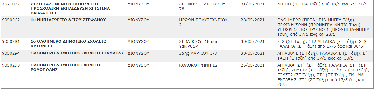 Δείτε ποια σχολεία χτύπησε ο κορωνοϊός στον Δήμο Διονύσου