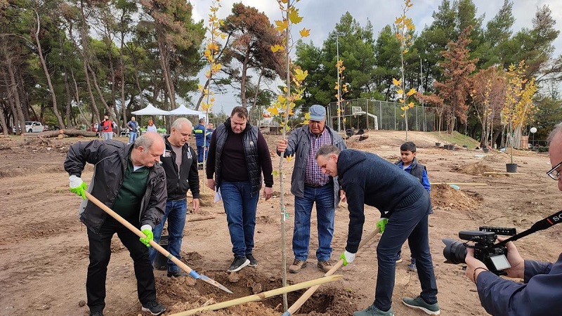 Η δενδροφύτευση περιελάμβανε τη φύτευση 80 μεγάλων δενδρυλλίων τα οποία προσέφερε η Εταιρία ΚLEEMANN. Συγκεκριμένα φυτεύτηκαν 60 Πλατάνια, 10 Σφένδαμοι και 10 Κουτσουπιές (3.5 μέτρων το καθένα).