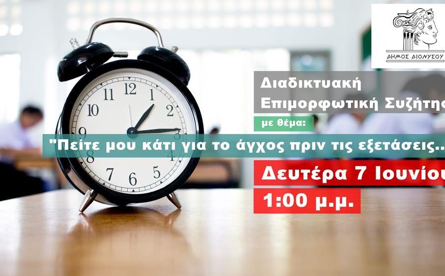 Διαδικτυακή Συζήτηση της Αντιδημαρχίας Παιδείας του Δήμου Διονύσου, με οδηγίες και συμβουλές για το άγχος στις εξετάσεις
