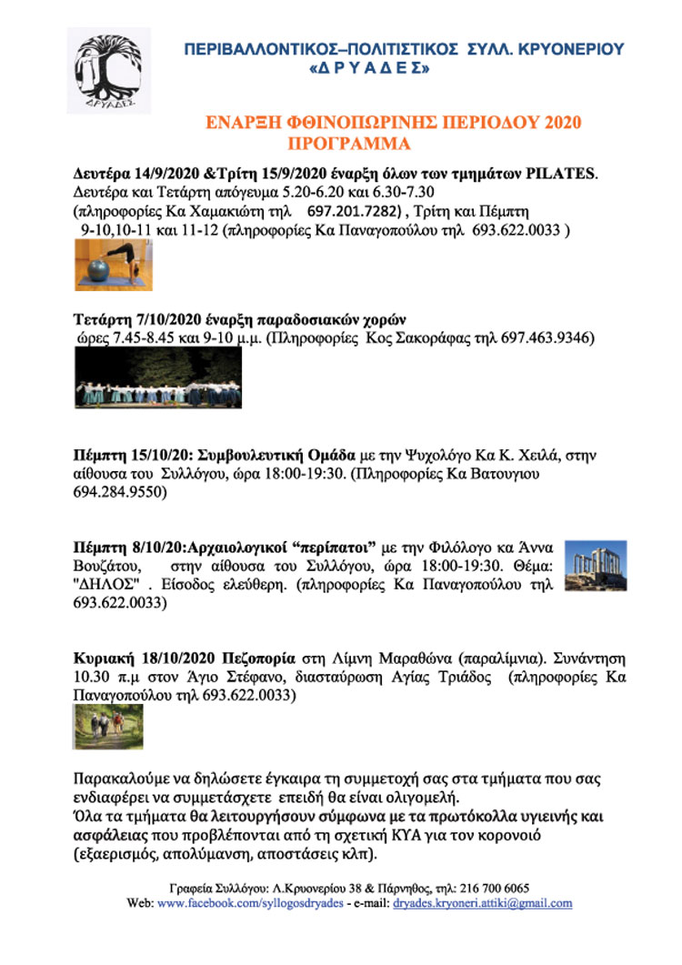 Με χαρά, ενημερώνουμε τα μέλη και τους φίλους των Δρυάδων πως ο Σύλλογος μας ξεκινά δειλά αλλά με υπευθυνότητα τις δράσεις του!