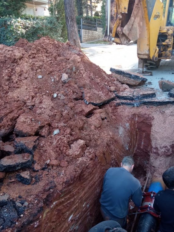 Επισκευή μεγάλης διαρροής νερού στην Πλατεία Σεμέλης Δροσιάς