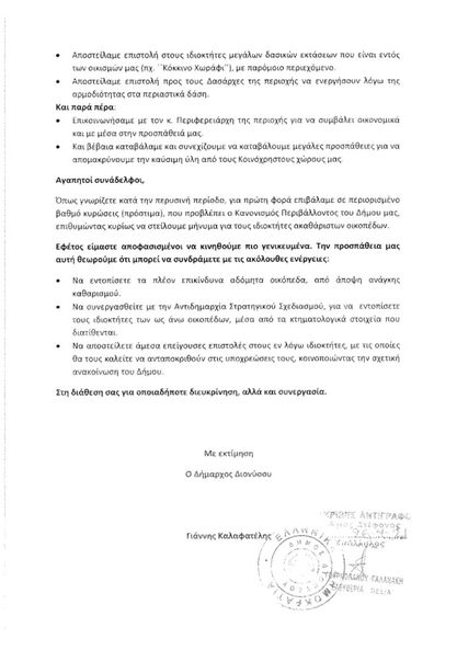 Επιστολή του Δημάρχου Διονύσου προς τους Προέδρους των Δημοτικών Κοινοτήτων για τα αδόμητα οικόπεδα