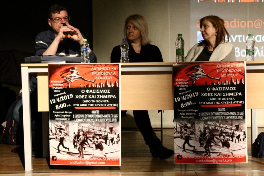 “Ευχάριστη έκπληξη ήταν για όλους και όλες μας, η εκδήλωση-συζήτηση της Αντιφασιστικής Πρωτοβουλίας Διονύσου την Παρασκευἠ 19-4-19 με θέμα:
