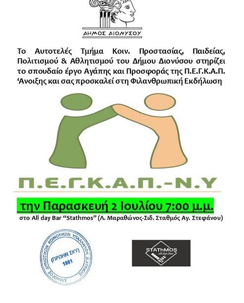 Φιλανθρωπική Εκδήλωση της ΠΕΓΚΑΠ την Παρασκευή 2 Ιουλίου