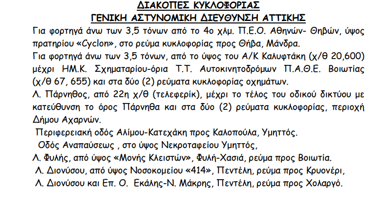 • Προσοχή στις μετακινήσεις στο οδικό δίκτυο της Αττικής τις επόμενες ώρες
