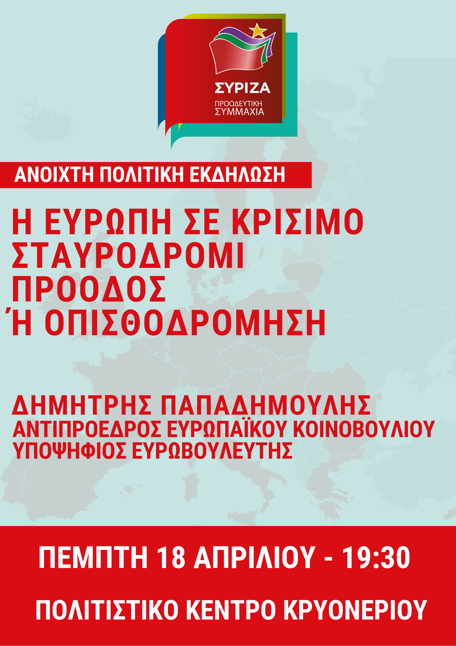 Ομιλία Δ.Παπαδημούλη στο Κρυονέρι – Πέμπτη 18/4