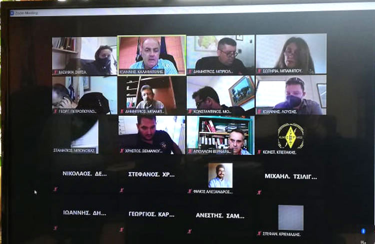 Η συνεδρίαση, που συγκλήθηκε με πρωτοβουλία του Δημάρχου Διονύσου Γιάννη Καλαφατέλη, πραγματοποιήθηκε μέσω τηλεδιάσκεψης.