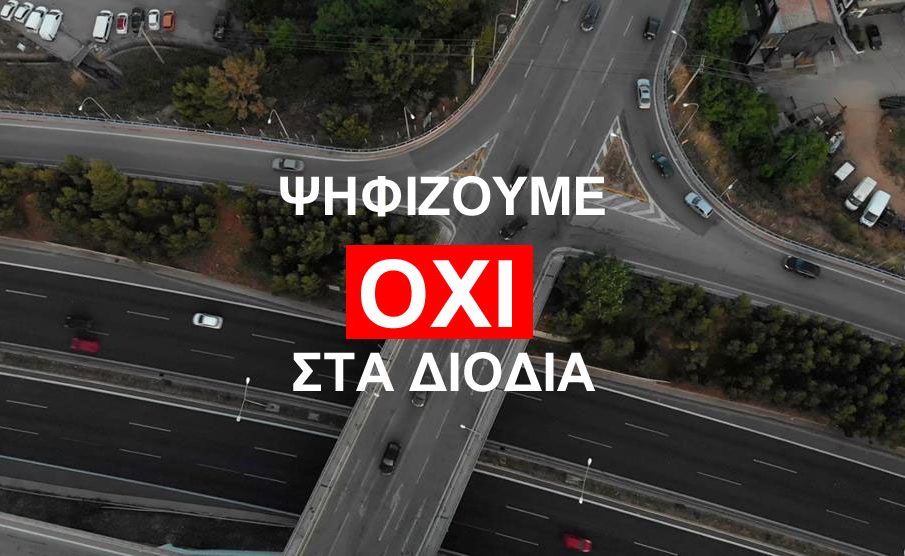 Εκφράζουμε την αντίθεσή μας στην τοποθέτηση πάσης φύσεως διοδίων, πλευρικών, μετωπικών, ηλεκτρονικών, στους Α/Κ Βαρυμπόμπης και Αγ. Στεφάνου.