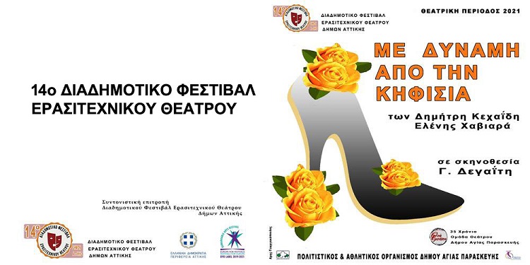 Την Κυριακή 5 Σεπτεμβρίου στις 21:00 μ.μ. στο πλαίσιο των ΔΙΟΝΥΣΙΩΝ 2021 ανοίγει η αυλαία του 14ο Διαδημοτικού Φεστιβάλ Θεάτρου, στο χώρο εκδηλώσεων του Παλιού Σταθμού, με τη θεατρική παράσταση «Με δύναμη από την Κηφισιά», που παρουσιάζει η Ομάδα Θεάτρου «Θεατροποί» του Δήμου Αγίας Παρασκευής.
