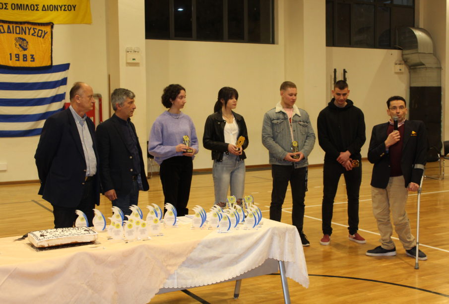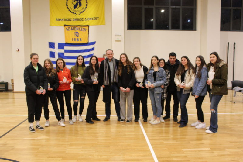 Στον 1ο Πρόεδρο του ΑΟ ΔΙΟΝΥΣΟΥ κ ΤΡΟΒΑ ΓΙΩΡΓΟ και στην αθλήτρια του βόλλευ ΜΑΡΙΑ ΓΚΡΑΤΣΙΑ ΡΟΥΜΑ για την προσφορά τους