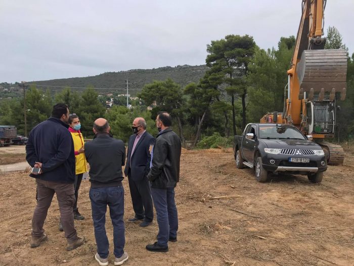 Ο Δήμαρχος Διονύσου Γιάννης Καλαφατέλης επισκέφθηκε την Τρίτη 3 Νοεμβρίου 2020 το εργοτάξιο, συνοδευόμενος από τον Αντιδήμαρχο Τεχνικών Υπηρεσιών Στέφανο Κριεμάδη, στο πλαίσιο της έναρξης των εργασιών διαμόρφωσης και εκσκαφής του οικοπέδου, 11 περίπου στρεμμάτων, στη συμβολή της Λεωφόρου Διονύσου με την οδό Κάδμου, στη Δημοτική Κοινότητα Διονύσου, δίπλα από το Κλειστό Γήπεδο. Εκεί είχε την ευκαιρία να συναντηθεί με τον επιβλέποντα της ΚΤΥΠ Α.Ε. και την υπεύθυνη εργοταξιάρχη της αναδόχου εταιρίας.