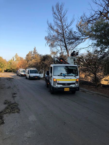 Ηλεκτρολόγοι από το Τμήμα Ηλεκτροφωτισμού του Δήμου Κηφισιάς, μαζί με τον Προϊστάμενο τους Κώστα Παπαϊωάννου , βρίσκονται από το πρωί στα καμένα της οδού Ποταμού στην περιοχή των Αδαμών και πραγματοποιούν εργασίες αποκατάστασης του δημοτικού φωτισμού.
