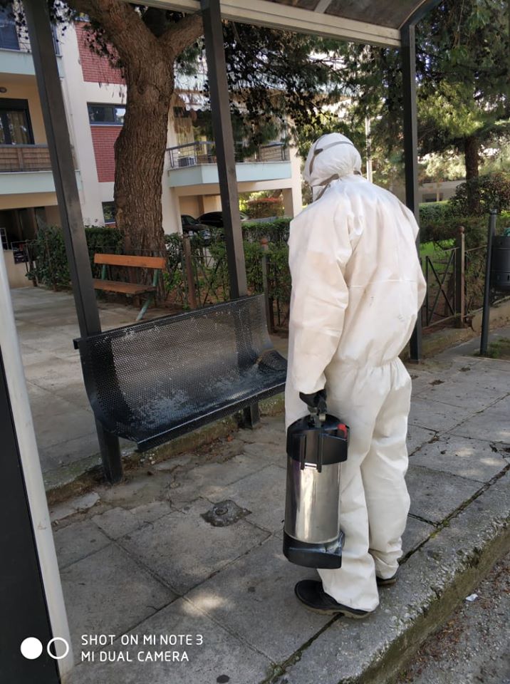 Το ειδικό συνεργείο ξεκίνησε την απολύμανση τις εργασίες του την Παρασκευή 20/3/2020 και θα συνεχίσει και την επόμενη εβδομάδα.