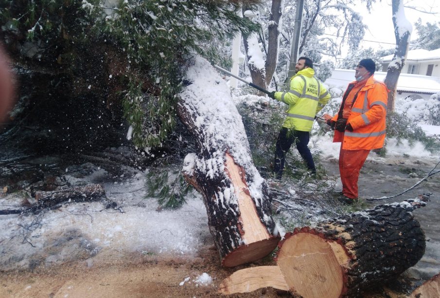 Ο  Δήμος Κηφισιάς έχει ενισχύσει τις δυνάμεις του με ιδιώτες για εκχιονισμούς, διανοίξεις οδών, συλλογή πεσμένων δέντρων και τεμαχισμό κορμών.