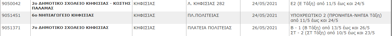 7ο ΔΗΜΟΤΙΚΟ ΣΧΟΛΕΙΟ ΚΗΦΙΣΙΑΣ (Β – 1 (Β Τάξη) από 13/5 έως και 26/5 ΣΤ – 2 (ΣΤ Τάξη) από 10/5 έως και 23/5)