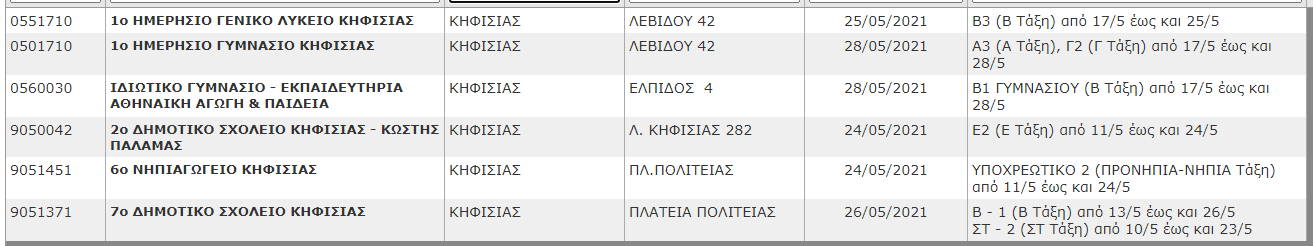 Δείτε ποια σχολεία χτύπησε ο κορωνοϊός στον Δήμο Κηφισιάς