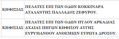 | 14/2/2021 8:00:00 πμ | 14/2/2021 1:00:00 μμ | ΚΗΦΙΣΙΑΣ | ΠΕΛΑΤΕΣ ΕΠΙ ΤΩΝ ΟΔΩΝ ΠΥΛΟΥ ΑΡΚΑΔΙΑΣ ΑΧΑΙΑΣ ΠΗΓΩΝ ΚΗΦΙΣΟΥ ΑΥΓΗΣ ΕΥΡΥΜΑΝΘΟΥ ΑΝΘΕΜΙΩΝ ΕΥΡΩΤΑ ΔΡΟΣΟΥ. | 33 | Κατασκευές |