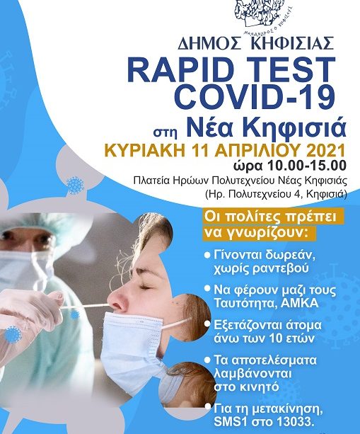 Δωρεάν rapid test στην Κηφισιά την Κυριακή 11/4/21
