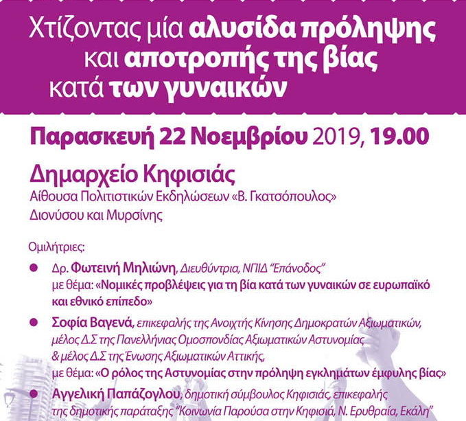 Εκδήλωση για τη βία κατά των γυναικών σήμερα στην Κηφισιά
