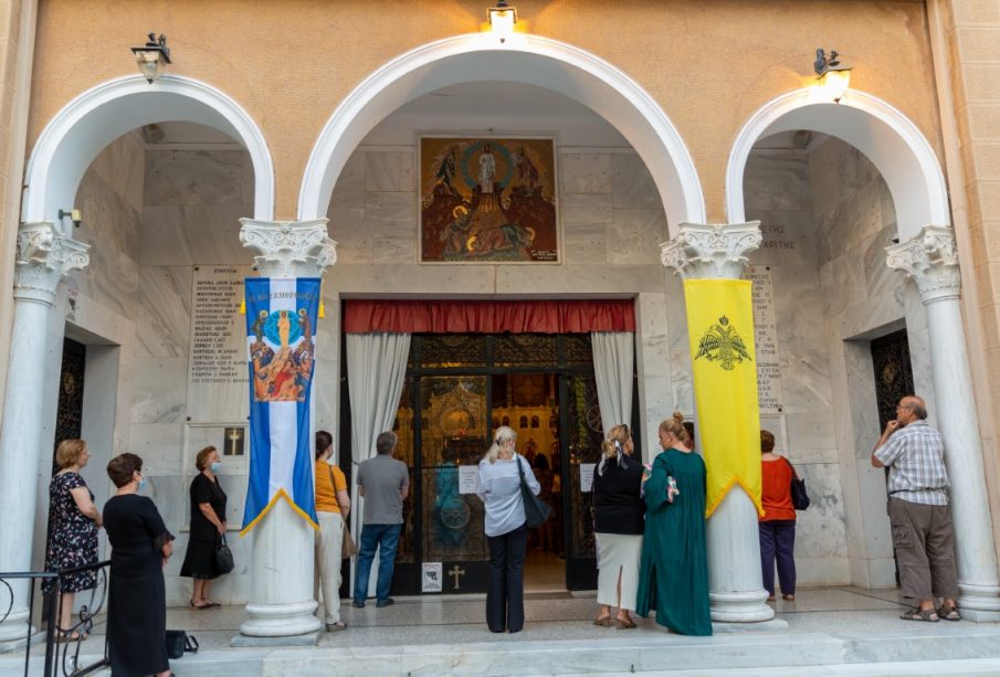 Οι πιστοί και οι αιρετοί που παρευρέθηκαν κρατούσαν μεταξύ τους αποστάσεις και φορούσαν μάσκες στο εσωτερικό του Ιερού Ναού, ενώ τα μέτρα τηρήθηκαν και στην περιφορά της Ιεράς Εικόνας στις πέριξ του Ναού οδούς.