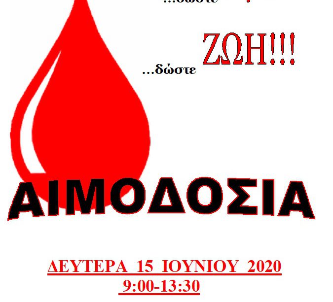 Η αιμοδοσία θα διεξαχθεί με την αυστηρή τήρηση των κανόνων και των υγειονομικών πρωτοκόλλων για την προστασία και την ασφάλεια των αιμοδοτών από την εξάπλωση του κορονοϊου.