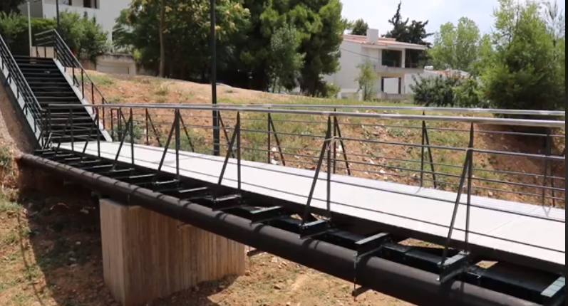 Μεταλλική γέφυρα διέλευσης πεζών στο ρέμα Σαπφούς στην Άνω Κηφισιά