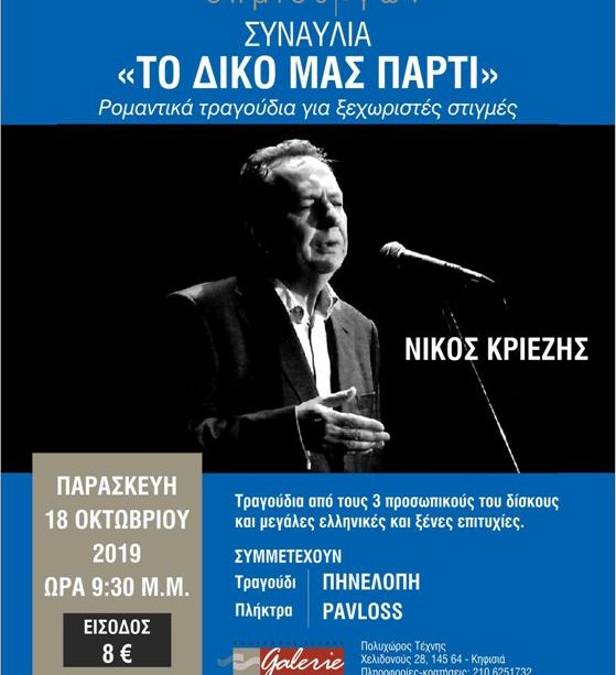 Νίκος Κριεζής,συναυλία: « το δικό μας πάρτυ» την Παρασκευή 18 Οκτωβρίου
