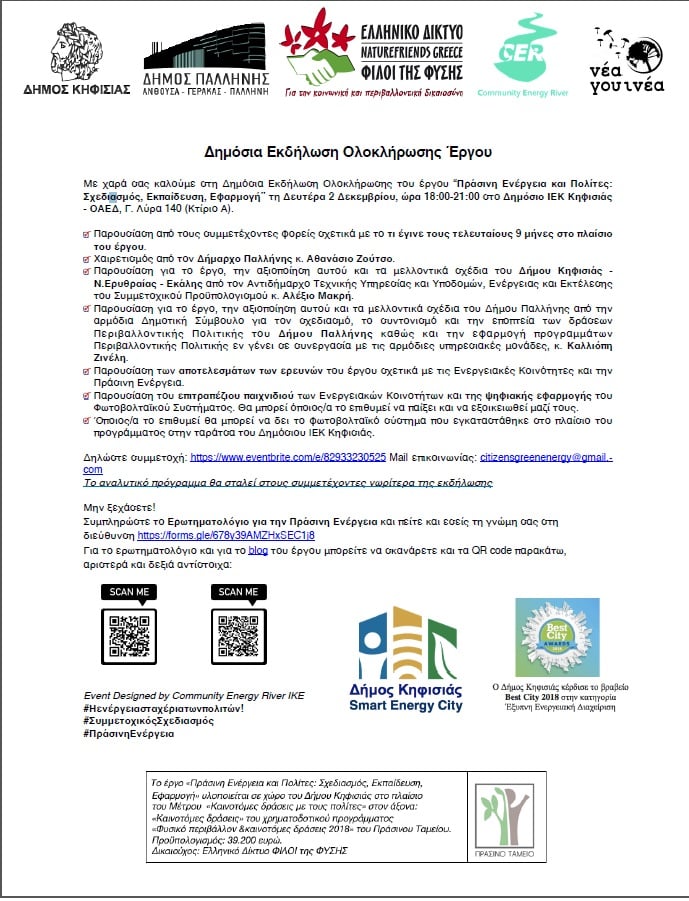 “Πράσινη Ενέργεια και Πολίτες: Σχεδιασμός, Εκπαίδευση, Εφαρμογή” στην Κηφισιά 2/12