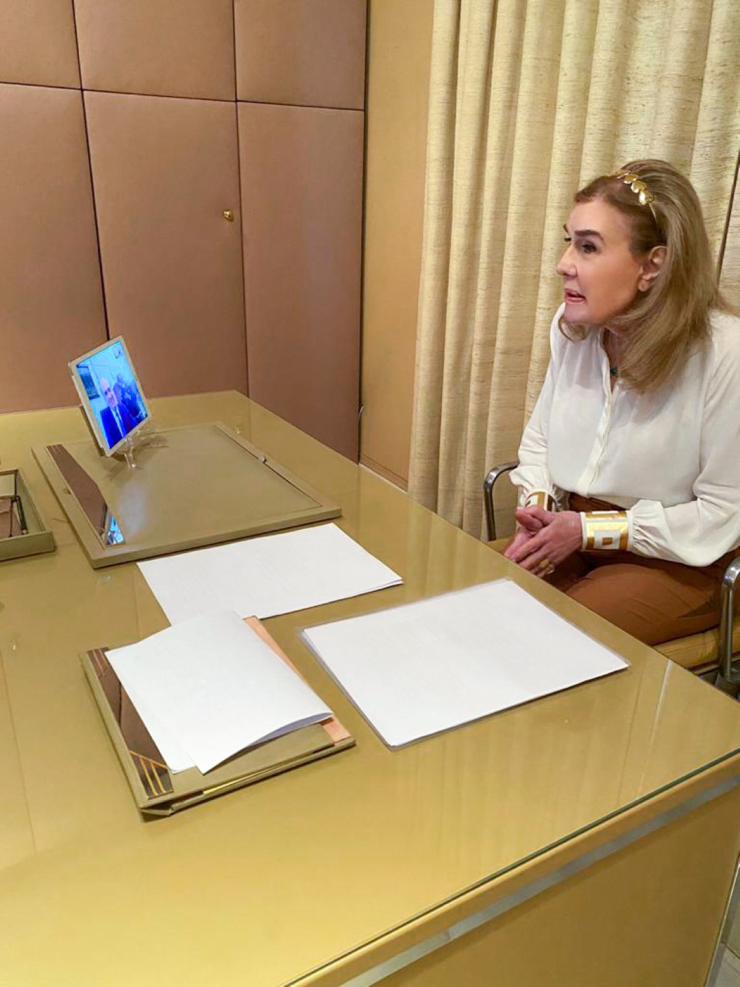 Μάλιστα η κυρία Βαρδινογιάννη θέλησε να συνομιλήσει μέσω skype με τον Δήμαρχο Κηφισιάς Γιώργο Θωμάκο για να του μεταφέρει τις ευχές της για τις Άγιες Μέρες του Πάσχα και κυρίως τη συμπαράστασή της για τον αγώνα στήριξης ανθρώπων που έχουν ανάγκη «Σας στέλνω τη σκέψη και την αγάπη μου. Θα είμαι κοντά σας σε ό, τι χρειαστείτε. Να έχετε κουράγιο και δύναμη για το δύσκολο έργο σας. Σας εύχομαι Καλή Ανάσταση και Καλό Πάσχα!» είπε η κυρία Βαρδινογιάννη, η οποία διαβεβαίωσε τον κύριο Θωμάκο ότι θα συνεχίσει να προσφέρει τη βοήθεια της για τους συμπολίτες μας που το έχουν περισσότερο ανάγκη.