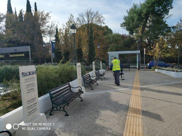 Οι φωτογραφίες είναι από τις απολυμάνσεις που πραγματοποιήθηκαν την προηγούμενη εβδομάδα σε δημόσιους χώρους.