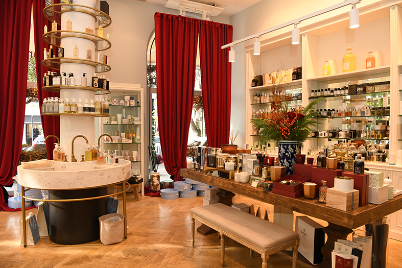 Όλα τα αγαπημένα niche perfume, beauty & home décor brands πρωταγωνιστούν στη νέα εορταστική βιτρίνα, η οποία είναι μοναδικά διακοσμημένη στο απόλυτο luxury Christmas mood. Πλούσιες κόκκινες βελούδινες κουρτίνες και φιόγκοι πλαισιώνουν μοναδικά τα χριστουγεννιάτικα signature blue κουτιά δώρων (καπελιέρες), γεμάτα από ξεχωριστά προϊόντα, ικανά να εντυπωσιάσουν και τους πιο απαιτητικούς λάτρεις της ομορφιάς και του design.