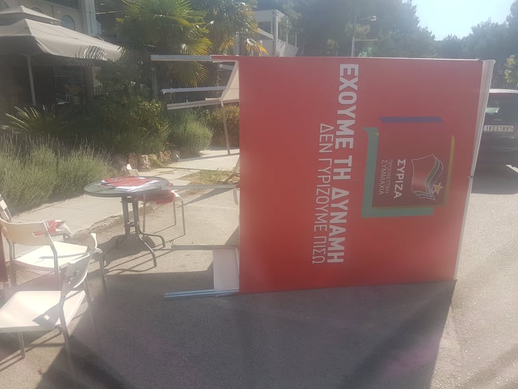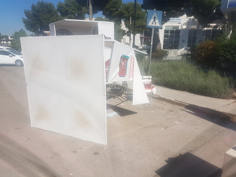 Άγνωστοι, μέχρι στιγμής,βανδάλισαν το εκλογικό περίπτερο του ΣΥΡΙΖΑ στη Νέα Κηφισιά, απέναντι από του Θανόπουλου.