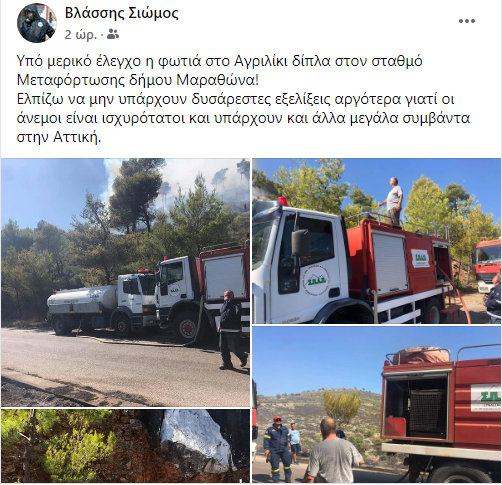 Υπό μερικό έλεγχο η φωτιά στο Αγριλίκι δίπλα στον σταθμό Μεταφόρτωσης δήμου Μαραθώνα!