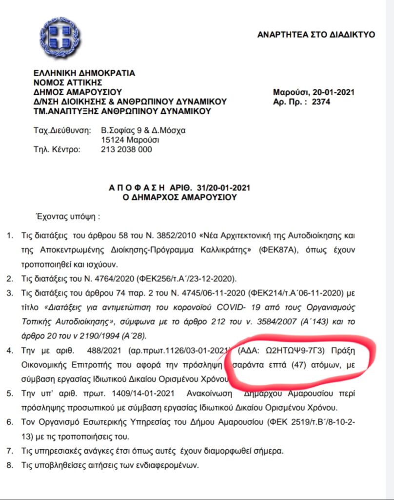 Ενωμένο Μαρούσι:47 προσλήψεις ρουσφέτια από τον Δήμο Αμαρουσίου – Αποκαλυπτική η λίστα