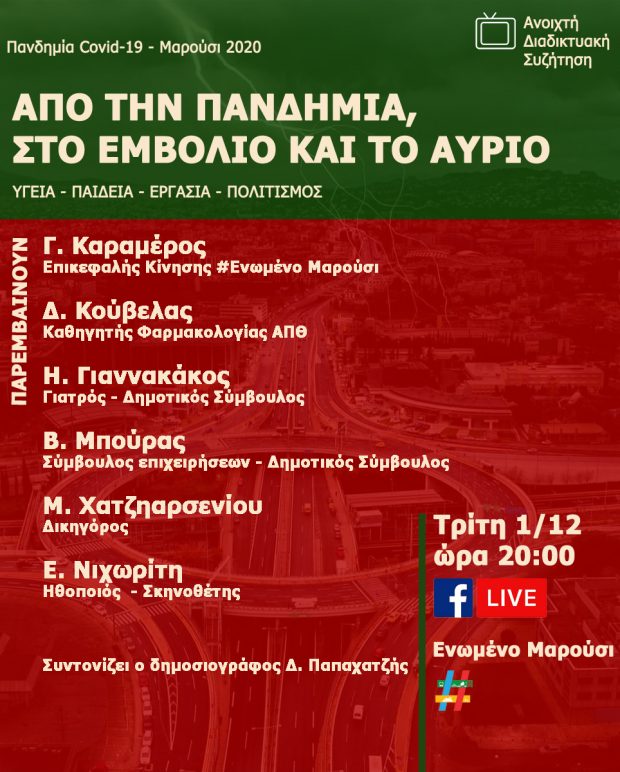 #Ενωμένο Μαρούσι: Σήμερα (1/12, 20:00) η διαδικτυακή συζήτηση εκδήλωση για την πανδημία και το εμβόλιο