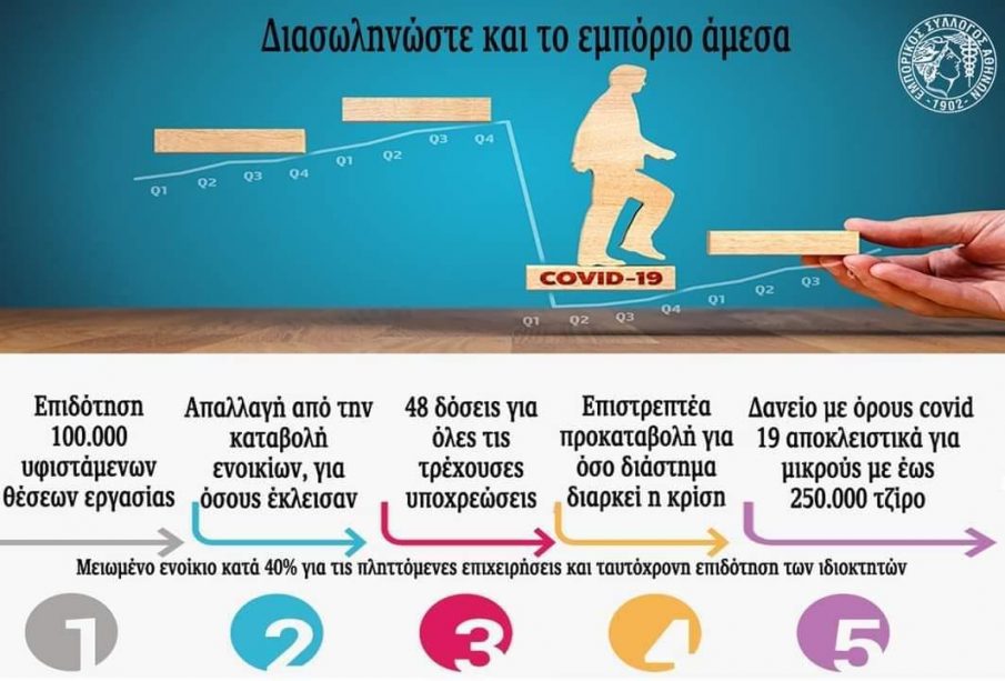 - Άμεση δημιουργία του συμφωνηθέντος χορηγικού δανείου με όρους covid 19, που θα υποχρεώνει τις τράπεζες να το προσφέρουν σε επιχειρήσεις κάθε μορφής, με τζίρο έως 250.000€. Μέσω αυτού του δανείου, θα μπορέσει να δοθεί σχετική λύση και στο θέμα των επιταγών που δεν θα μπορούν να καλυφθούν.