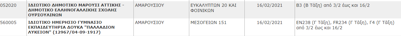 Σύμφωνα με ανακοίνωση του Υπουργείου Παιδείας κρούσμα COVID-19 βρέθηκαν στο ΙΔΙΩΤΙΚΟ ΔΗΜΟΤΙΚΟ ΜΑΡΟΥΣΙ ΑΤΤΙΚΗΣ – ΔΗΜΟΤΙΚΟ ΕΛΛΗΝΟΓΑΛΛΙΚΗΣ ΣΧΟΛΗΣ ΟΥΡΣΟΥΛΙΝΩΝ και στο ΙΔΙΩΤΙΚΟ ΗΜΕΡΗΣΙΟ ΓΥΜΝΑΣΙΟ ΕΚΠΑΙΔΕΥΤΗΡΙΑ ΔΟΥΚΑ “ΠΑΛΛΑΔΙΟΝ ΛΥΚΕΙΟΝ”