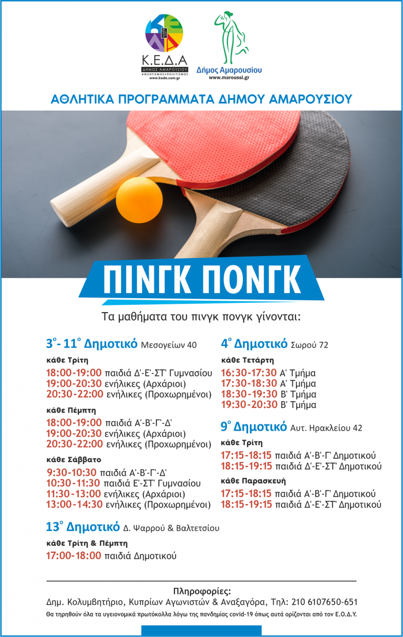 Μαθήματα πινγκ πονγκ στο Μαρούσι