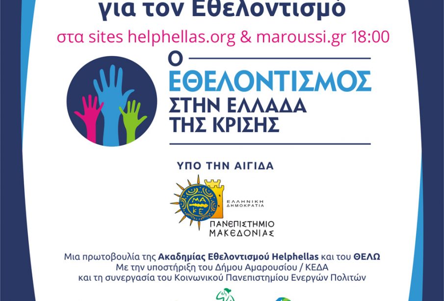 «Ο Εθελοντισμός στην Ελλάδα της κρίσης»: Διαδικτυακή Εσπερίδα για την Παγκόσμια Ημέρα Εθελοντισμού, με την υποστήριξη του Δήμου Αμαρουσίου