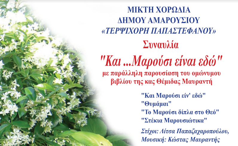 Με τη συναυλία «Και…Μαρούσι είναι εδώ» η Μικτή Χορωδία του Δήμου Αμαρουσίου συμμετέχει στο Φεστιβάλ Δήμου Αμαρουσίου 2020, με παράλληλη παρουσίαση του ομώνυμου βιβλίου της Θέμιδας Μαυραντή.