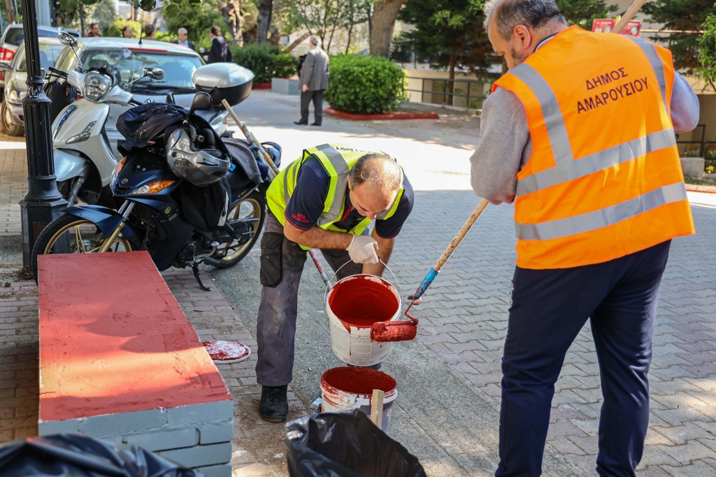 Οι εργασίες πραγματοποιούνται στο πλαίσιο εκτέλεσης προγράμματος καθαριότητας και ευπρεπισμού όλων των γειτονιών του Αμαρουσίου και με προτεραιότητα τους κοινόχρηστους χώρους συγκέντρωσης πολιτών.