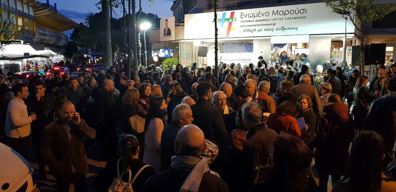 Το σχέδιό του για το Μαρούσι παρουσίασε ο υποψήφιος δήμαρχος Αμαρουσίου Γιώργος Καραμέρος παρουσία 1000 και πλέον πολιτών στα εγκαίνια του εκλογικού κέντρου του συνδυασμού «Ενωμένο Μαρούσι».