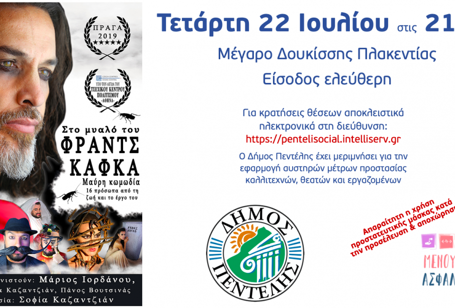 Ο Δήμος Πεντέλης παρουσιάζει τη Μαύρη Κωμωδία « Στο μυαλό του Φραντς Κάφκα» με τον Μάριο Ιορδάνου και τη Σοφία Καζαντζιάν.