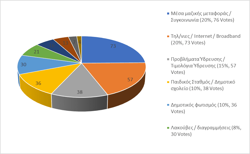 - Οι τηλεπικοινωνίες και κυρίως η πρόσβαση των κατοίκων σε υπηρεσίες ευρυζωνικότητας μέσω σταθερών υποδομών και δικτύων.