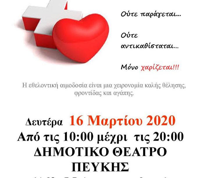 Δήμος Λυκόβρυσης- Πεύκης: Στις 16/3 η Εθελοντική Αιμοδοσία στην Αίθουσα Μ. Αναγνωστάκης
