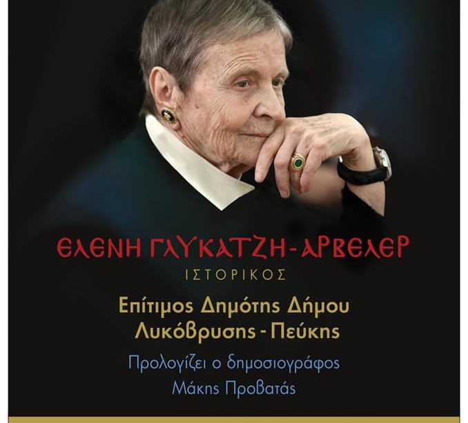 Σε επίτιμη δημότισσα Λυκόβρυσης- Πεύκης ανακηρύσσεται η Ελένη Γλύκατζη- Αρβελέρ, μετά από ομόφωνη απόφαση του Δημοτικού Συμβουλίου. Ο Δήμαρχος Λυκόβρυσης- Πεύκης Τάσος Μαυρίδης προσκαλεί τους πολίτες του Δήμου την Κυριακή 24 Νοεμβρίου 2019, και ώρα 19:00 στο Δημοτικό Θέατρο Πεύκης (Χρυσοστόμου Σμύρνης και Ρήγα Φεραίου) να παραβρεθούν στην ανακήρυξη και να παρακολουθήσουν την ομιλία της μεγάλης Ελληνίδας ιστορικού. Θα προλογίσει ο δημοσιογράφος Μάκης Προβατάς.
