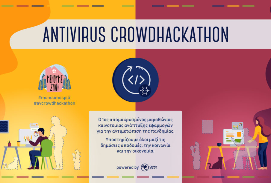 Αναλαμβάνουμε την πρωτοβουλία και ανακοινώνουμε το antiviruscrowdhackathon. Είναι ένας απομακρυσμένος μαραθώνιος καινοτομίας και τεχνολογίας για εφαρμογές και μεθοδολογίες για την οικονομία και την κοινωνία με στόχο να αντιμετωπίσουμε τις συνέπειες της πανδημίας.