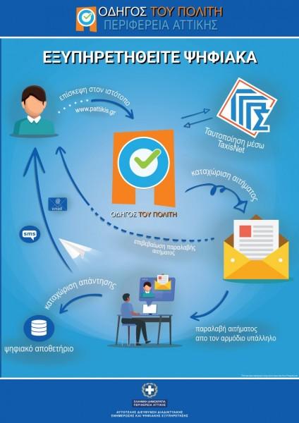 Ειδικότερα με δεδομένο ότι εκατόν εβδομήντα (170) περίπου Ψηφιακές Υπηρεσίες του «ΟΔΗΓΟΥ ΤΟΥ ΠΟΛΙΤΗ» της Περιφέρειας Αττικής – http://pattikis.gr, είναι διαθέσιμες και μέσα από την Ενιαία Ψηφιακή Πύλη http://gov.gr του Υπουργείου Ψηφιακής Διακυβέρνησης, οι πολίτες μπορούν πλέον να αναζητούν και να υποβάλλουν τα αιτήματα τους για τις Ψηφιακές Υπηρεσίες της Περιφέρειας Αττικής και μέσα από την πύλη gov.gr.